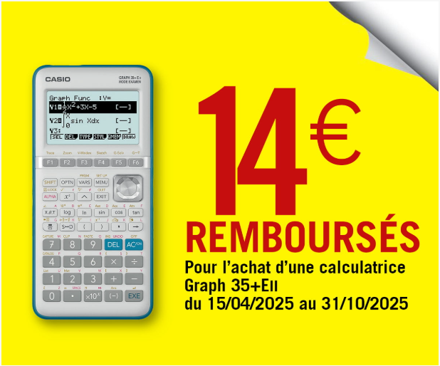 • 14€ sur la Graph 35+E II, jusqu’au 31 octobre 2025 (et anciennes références)