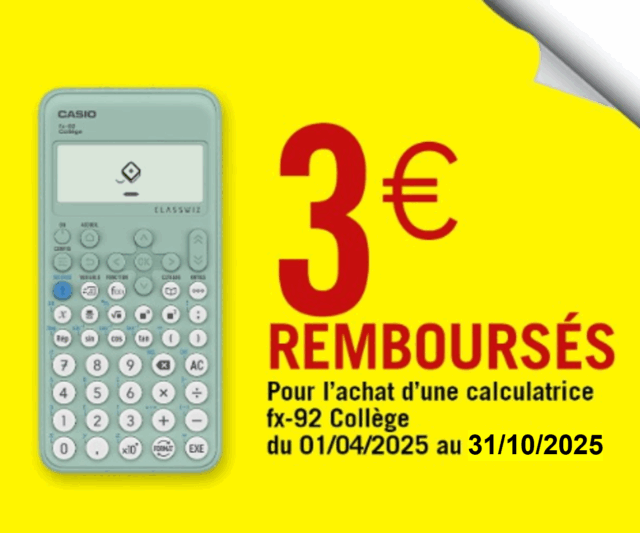 • 3€ sur la fx-92 Collège, jusqu’au 31 octobre 2025 (et anciennes références)