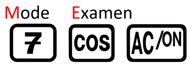 Pour les calculatrices non formelles (ces touches ont été choisies car elles correspondent aux initiales de Mode Examen) :
