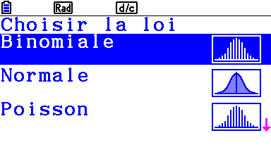 Il suffit de choisir la loi à étudier dans la liste proposée, …