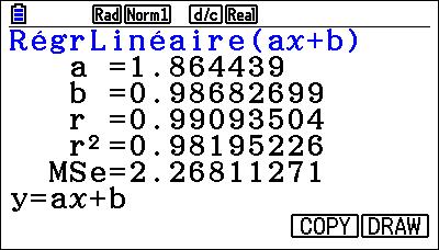 Pour afficher le diagramme de dispersion (ou diagramme de corrélation), presser les touches q {GRAPH} et q {GRAPH1}.