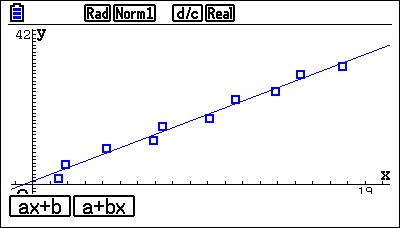 Droite d'approximation affine avec la calculatrice CASIO Graph 90+E
