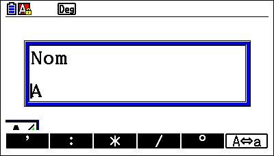 Une boite de dialogue apparaît, et le mode ALPHA est automatiquement saisi. Il suffit alors d’effacer A avec P puis de le remplacer par M.
