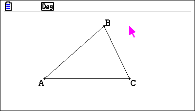 Pour dessiner un triangle se déplacer à l’aide des flèches N jusqu’à la ligne {1 : Triangle} du sous-menu Spé Des puis valider par la touche l. Positionner le curseur à l’emplacement où vous souhaitez placer un point puis valider par la touche l. Déplacer le pointeur à l’aide des flèches BN. Un cadre est dessiné.