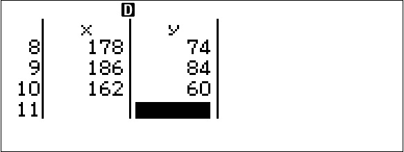Puisque nous sommes en présence d’une série statistique à deux variables, choisir y=ax+b avec la touche 2.Saisir les couples de données :
