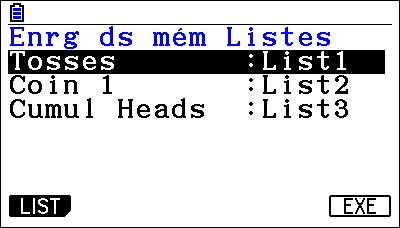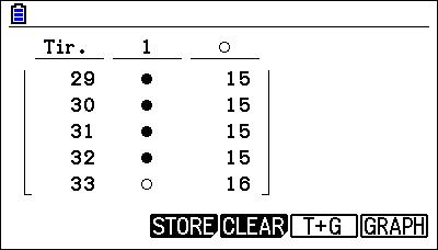Pour stocker les tirages sous forme de listes, appuyer sur la touche e {STORE}, puis valider avec la touche l.