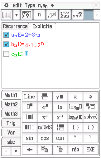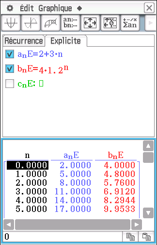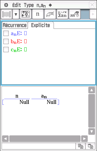 Pour entre des formules de suites sous forme explicite, choisir la fenêtre {Explicite}.