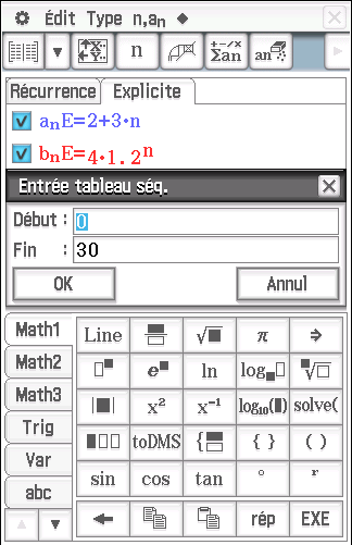 Les différentes fonctionnalités de base du menu Sequence vous sont présentées ici: expression, table de valeurs, graphiques… Vous pourrez ainsi aisément utiliser ce menu.