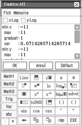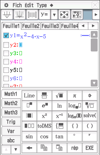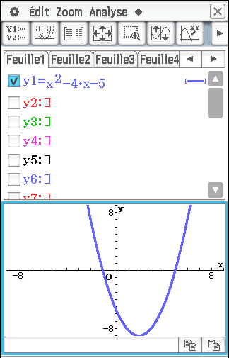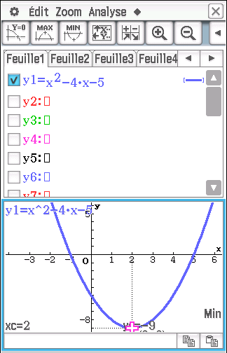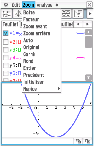 - {y=} pour Changer le type d’expression (Y=;r=;…Y>;Y<;…X>;X<;…),