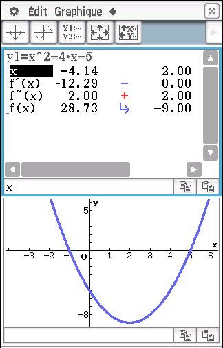 Pour obtenir le minimum ou le maximum de la fonction, il faudra appuyer sur: