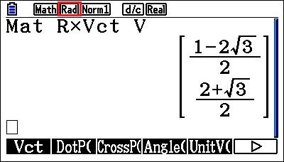 Déclarons alors la matrice de rotation dans la calculatrice :