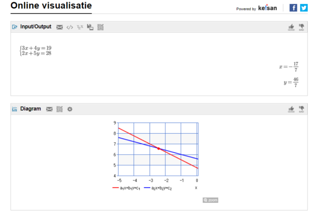 Men bekomt de grafische weergave van het ingevoerde stelsel vergelijkingen.