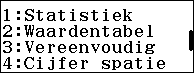 Ga met behulp van de toets R naar het tweede scherm en kies “Waardentabel” met 2.