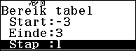 Voer de start-, de eindwaarde en de stapgrootte in.