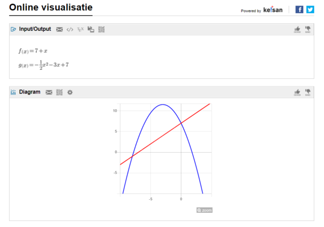 Toepassing : gegeven zijn de functies f en g met f(x)=7+x en g(x)=-\frac{1}{2}x^2-3x+7.