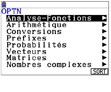 Er is een nieuw menu CALCUL toegevoegd aan de rekenmachine, met alle functies die.in het middelbaar onderwijs bestudeerd worden.