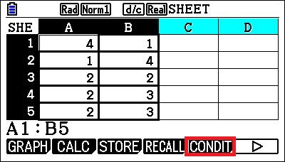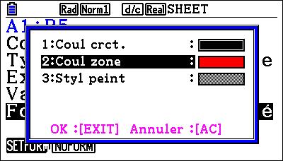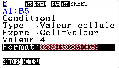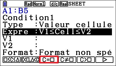 Nous allons alors paramétrer ces cellules en pressant les touches u et y {CONDIT}.