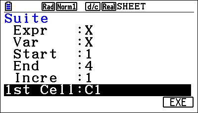 Vous retrouverez également à la fin de cette page le guide utilisateur du menu Tableur / S.SHT (Graph 90+E / Graph 35+E II) ainsi que deux exercices.