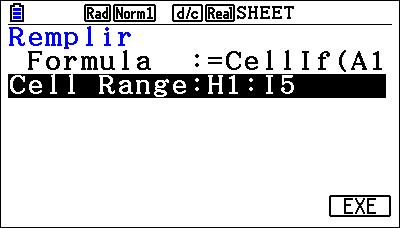 Pour réaliser cette somme, appuyer sur y {CELL} et y {Sum}.
