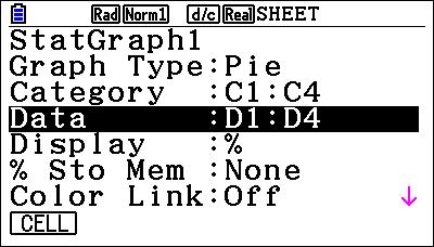 Pour cela, il faut sélectionner les cellules C1 à D4, puis presser les touches u, q {GRAPH} et u {SET}.
