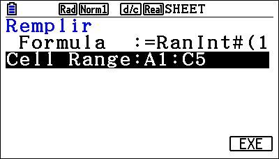 Pour cela, il faut d’abord se replacer sur la cellule A1, puis presser les touches w {EDIT}, u et q {FILL}.