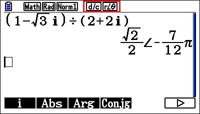 Il est possible d’obtenir un nombre complexe écrit sous la forme souhaitée, même si les réglages du SETUP sont différents.