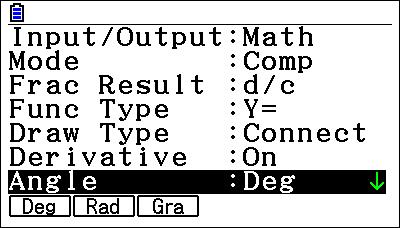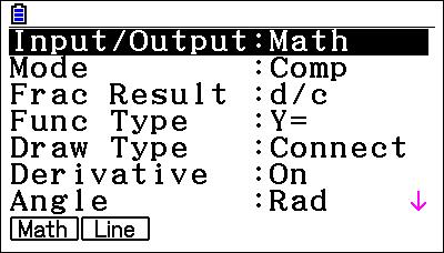 Dans le menu Exe-Mat (Graph 90+E), RUN-MAT (Graph 25+E II et Graph 35+E II), appuyer sur les touches Lp pour accéder à [SET UP].