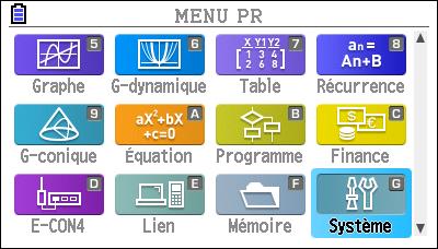 Accéder au menu Système (Graph 90+E), SYSTEM (Graph 25+E II et Graph 35+E II).
