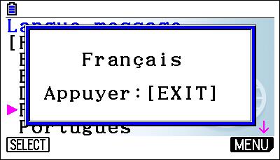 Sélectionner Français à l’aide des flèches.