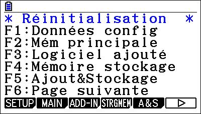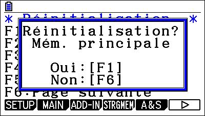 Saisir la touche q {SETUP} pour réinitialiser les données principales, w {MAIN} pour réinitialiser la mémoire principale.