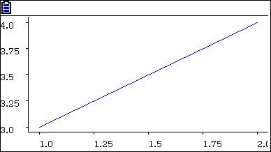 Pour modifier la fenêtre graphique, il suffit d’entrer comme argument la liste des minimums et maximums des abscisses puis des ordonnées de la fenêtre voulue. Dans l’exemple ci-contre, la fenêtre sera modifiée pour avoir xmin=1, xmax=2, ymin=-1 et ymax=4.