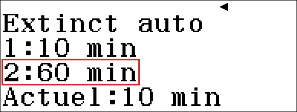 L’extinction automatique est réglée sur dix minutes par défaut.