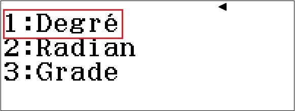 Appuyer sur la touche 1 pour choisir le Degré comme unité d’angle.