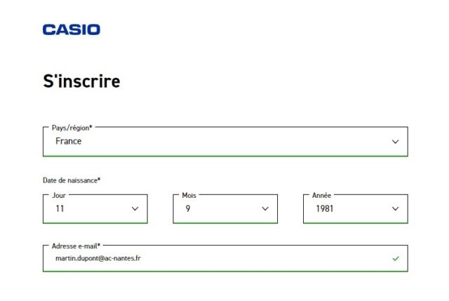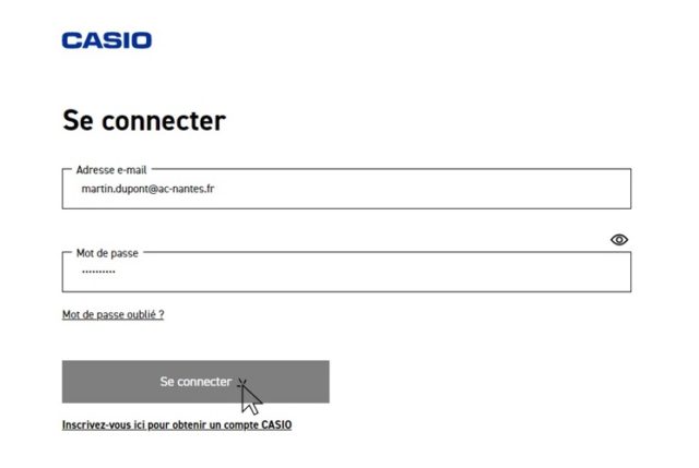 Nous vous recommandons d’utiliser une adresse mail académique (du type enseignant@ac-academie.fr) afin d’être automatiquement reconnu en tant qu’enseignant. Si vous ne possédez pas d’adresse académique, veuillez nous contacter à education-france@casio.fr afin que nous validions manuellement votre compte.